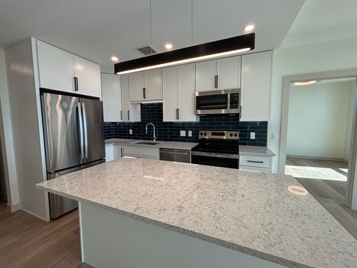Welcome to Bank Street Apartments—53 brand-new, modern residences perched atop the upper floors of an 11-story building in the heart of downtown Burlington. Designed for comfort and built for style, these thoughtfully curated homes offer stunning city views, in-unit laundry, and upscale finishes including stainless steel appliances, custom closets, Wolf cabinetry, Daltile accents, and luxury vinyl plank flooring.