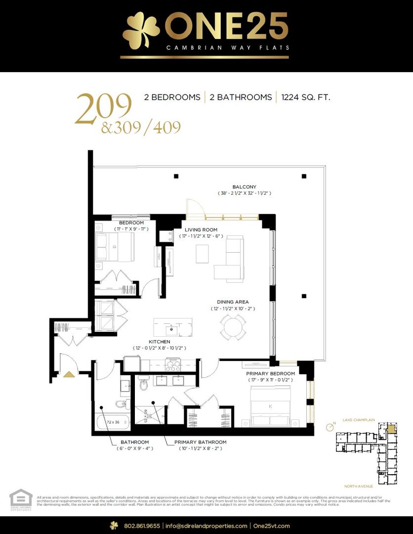 2BR/2BA with Chic Interiors and Incredible Lake Champlain Views at One25
