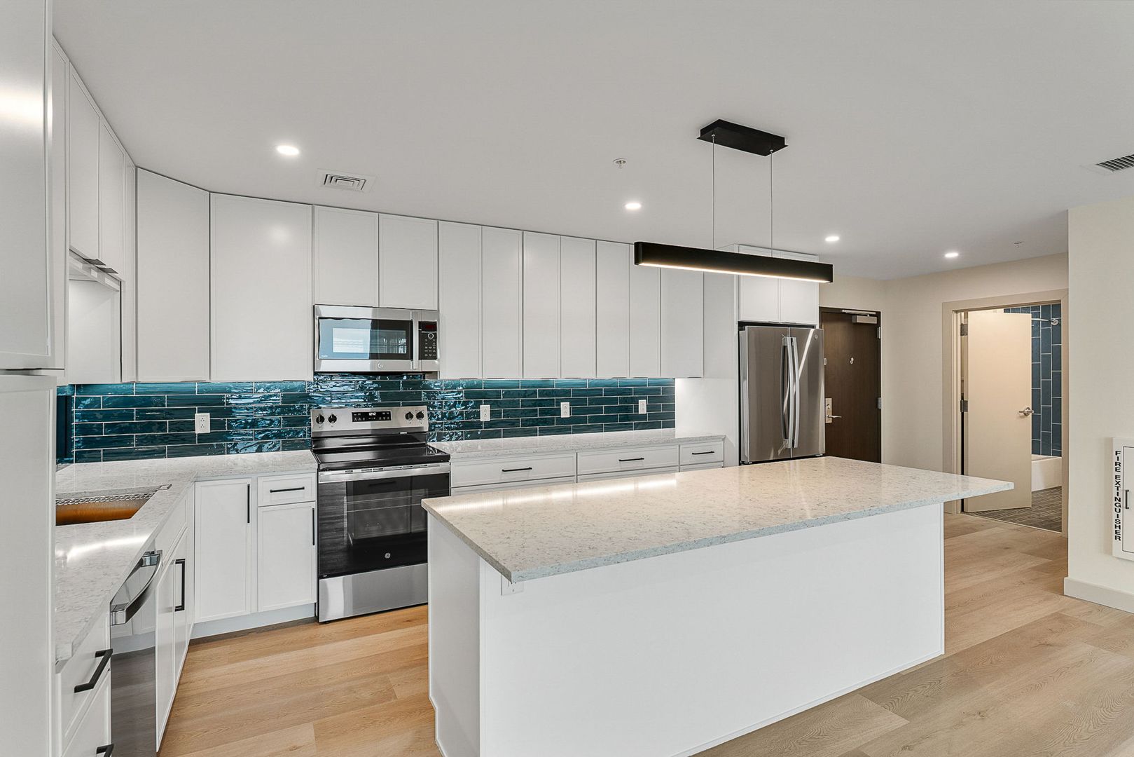 Bank Street Apartments features a community fitness center, secure mailroom, and dedicated property manager & maintenance team. At the top level, enjoy a stylish community lounge and top-floor deck equipped with grills and a pizza oven—perfect for gathering with neighbors or unwinding above the city skyline. Can you just imagine 4th of July sights?!