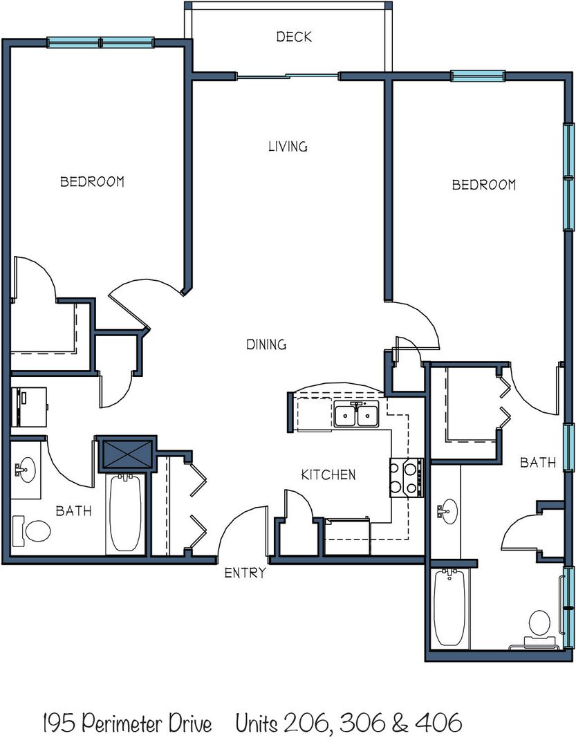 Welcome to Unit 206 at 195 Perimeter Drive — a bright and spacious 2-bedroom, 1-bathroom corner unit with 990 sq ft of comfort and style. This apartment features a private balcony with community-facing views. In-unit laundry makes chores a breeze!