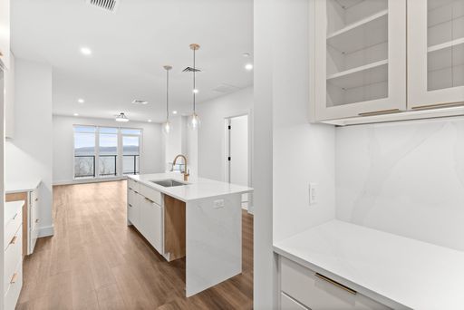 Elevated living meets refined design in Unit 503 at One25, a stunning residence with west-facing views of Lake Champlain and sunsets that steal the show. This home features an expansive 303-sq-ft private balcony, accessible from the living room and both bedrooms, creating seamless indoor-outdoor living.