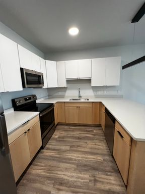 Discover your perfect urban retreat in this top-floor, 1 bedroom, 1 bath apartment with balcony at Sunderland Farms Community. Bathed in natural light, the open floor plan features gorgeous luxury vinyl plank flooring flowing throughout the airy interior. The kitchen is a chef's dream with stainless steel appliances, sleek quartz countertops, and ample cabinet storage.