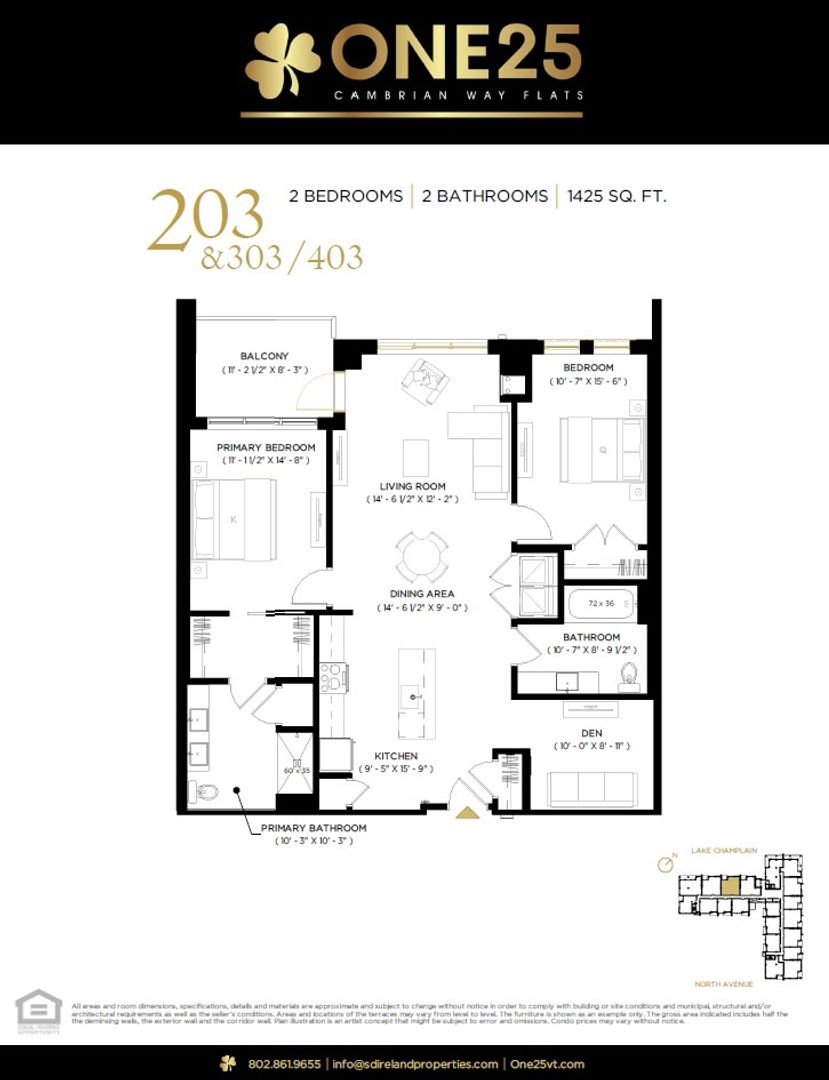 2 Bed + Den with Lake Champlain Views at One25